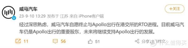 2023年9月,威马官方书记赶走与一家名为Apollo出行的公司的借壳上市琢磨。
